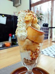 秋のスイーツメニューの中から、かぼちゃプリンパフェを食べました。 底にはシフォンとかぼちゃアイス、そしてプリンに生クリームたーっぷり♡ ボリュームがあるのにリーズナブル!! どのメニューも安くて美味しく、店主さんの感じもいいのでいつもお客さんで賑わってます♪