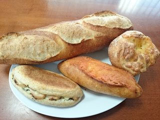 この日も店内お客さんでいっぱい!お昼だったのでたくさん焼けてました♪ ローストチキンとバジルチーズのパンは、クリームチーズと生バジル、玉ねぎがいい味! 歯切れのいいパン生地なので食べやすかったです♪ いつもバゲットretroを買うんですが、たまには変えてみたバターフランス。 こちらも生地もバター風味もよくおいしかったので次回も買いたいです♪