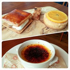 イートイン限定・新メニューが登場してたので早速いただきました♪ クレームブリュレは注文を受けてから焼き上げてくれるので、カラメルがカリッカリ!! 香ばしくですごくおいしかったです♡ もう一つのイートイン限定新メニューは、焼き立て菓子セット! この日は、レザブール、オレンジのタルト、グラノーラ・フロランタンの3種類で380円! 美味しい焼き菓子が3つも食べられて、かなりお得だと思います♡ (投稿:2015/06/10 掲載:2015/06/12)