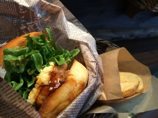 うわさのバーガー屋さんへ。本格的なハンバーガーなのに、セットにしても1000円いらない手軽さが嬉しい❤️ 甘酢のチキンはたっぷりの野菜との相性満点で、食べるのが止まらない^^; ポテトも塩加減バツグン。とーっても美味しくいただきました。 (投稿:2015/01/08 掲載:2015/01/09)