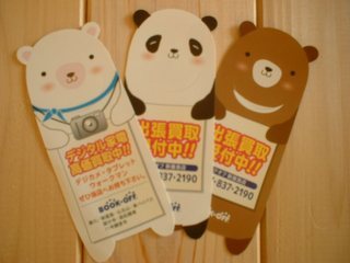欲しい本は置いているかなと探しに行ってみました。 探していた本は無かったのですが、とてもかわいいしおりがあったのでもらって帰りました。 ブックオフの買取案内の書かれたしおりで、シロクマやくまやパンダで可愛くて使いやすいです。 本を読むときに使っています。 (投稿:2015/12/09 掲載:2015/12/11)