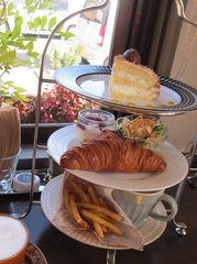 11時に入店しました。この時間はモーニングが終了、ランチが始まる前の時間帯ですがどちらも注文できるようで、価格の安いモーニングにしました。その中でも一番豪華なケーキまで付いた3段トレイ。コーヒーの価格に600円+ですが、ランチ並のボリューム!大きいクロワッサンはサックサクで中はもっちり。サラダ、具だくさんなクラムチャウダー、ゆで卵、フライドポテト、フルーツヨーグルト、ケーキ、クロワッサン。満腹です! (投稿:2015/12/10 掲載:2015/12/11)