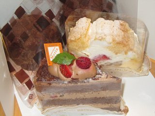 いつも美味しいケーキが頂けるもりんさん。今回も期待を込めてお邪魔させて頂きました。色とりどりの美味しそうなケーキが並ぶショーケースを前に、いつも沢山迷ってしまいます♪ そんな中、今回選ばせて頂いたのはふわふわメレンゲ生地のロールケーキです。それとチョコショート、それにとっても美味しいシュークリーム!メレンゲ生地のケーキは、本当にふわふわでメレンゲの良さが生かされてて期待以上の美味しさでした♪中には生クリームの下にカスタードクリームまで入っていました。嬉しい驚きです♪ このケーキを選ばせて貰って良かった~と思いました♪ シュークリームはいつもながら、シュー皮もクリームも最高の美味しさです。もりんさんのケーキは本当にハズレ無しなので安心して買いに行かせて頂けます!今回も美味し~~いケーキをありがとうございます♪ (投稿:2015/10/15 掲載:2015/10/19)