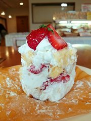 ケーキセットを食べました。 スポンジ系が食べたかったので平凡にいちごショートを選んだんですが。。。 めくるとビックリ!!ふわふわスポンジと生クリームが層になってて食感が軽くて食べやすい♡ 甘酸っぱいイチゴもたっぷりで、すごく美味しかったです♪ コーヒーゼリー入りティラミスも美味しそうだったので次回食べたいです! スイーツセットやパフェが大人気ですが、ケーキもオススメです♡ (投稿:2015/09/07 掲載:2015/09/10)