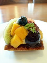 タルト・フリュイをイートインしました。 しっとりしたタルト生地に甘さ控えめカスタードクリーム♪ フルーツたっぷりで爽やか!美味しいです。 イチヂクケーキも出始め、もうすぐブリュレも栗バージョンが登場とか!!楽しみ~♪ 店主奥さんとの会話も楽しくお気に入り店です♡ (投稿:2015/08/28 掲載:2015/09/01)