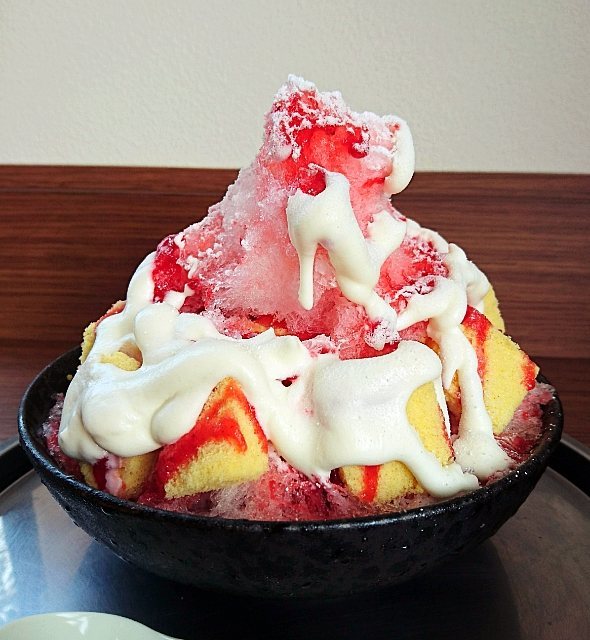 ケーキ屋さんのひんやりかき氷をイートインしました。 苺シャーベット、スポンジ生地、生クリームたっぷりの「いちごショート」♪ 甘さ控えめでボリューミー!ケーキ屋さんらしいかき氷、おいしかったです。 (投稿:2017/07/28 掲載:2017/08/18)