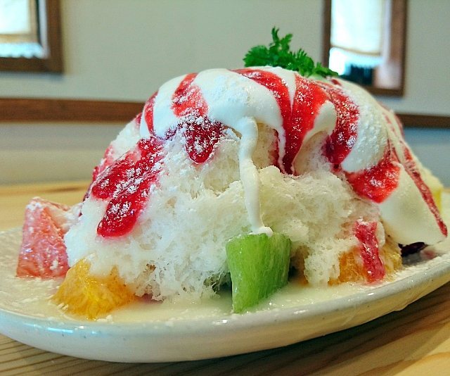 ぺるる人気の台湾かき氷を食べました。 今年は2種類メニューが増えてます♪ 選んだのは、生クリームいちご! オムライスみたいな可愛い姿で登場♡ 中にはフルーツたっぷりで美味しい♪ ボリュームがあるけど甘さ控えめなのでペロッといけました! 今年も一通り食べたいです♪ (投稿:2017/06/29 掲載:2017/07/28)