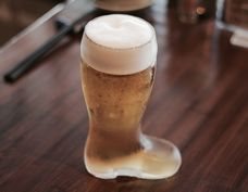 minnoの生ビールといえば「ブーツグラス」。40代以上は懐かしく感じる、一世を風靡したこのグラス。初めてこのグラスでビールを飲む初心者は注意が必要です。コツはつま先部分を下に向けて飲むこと。上に向けて飲んだ日には、がぼがぼとビールが噴出してきます!